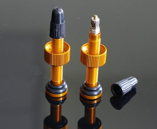 Yuniper Tubeless-Ventil in goldener Anodisierungsfarbe und 50mm Gesamtlänge.
